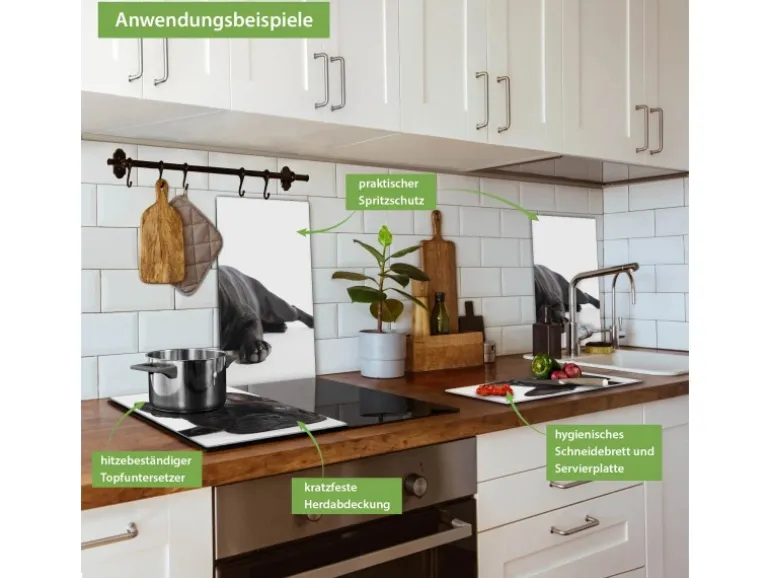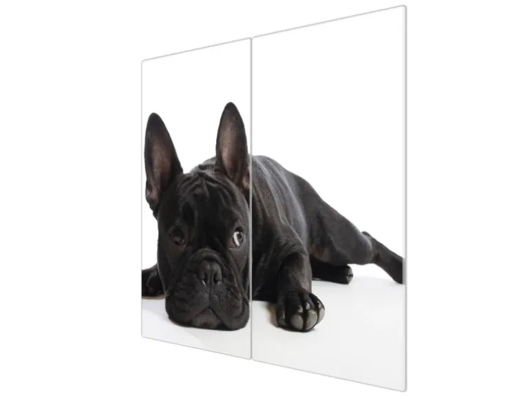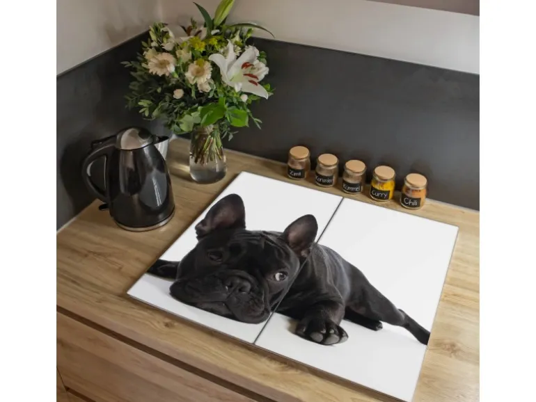 Banjado Herdabdeckplatte Glas 2 Teilig Je 30x52CM Schneidebrett Herdabdeckung Mit Motiv Bulldogge