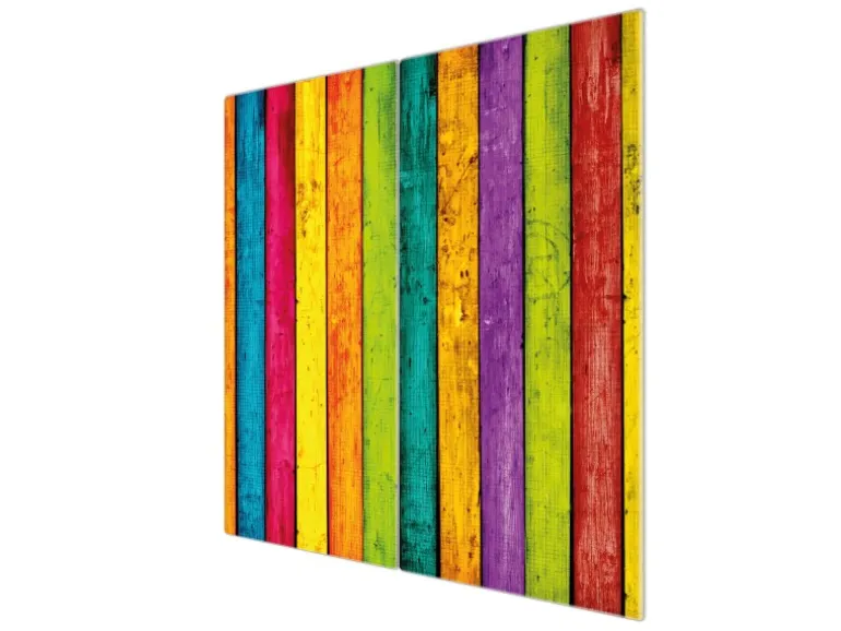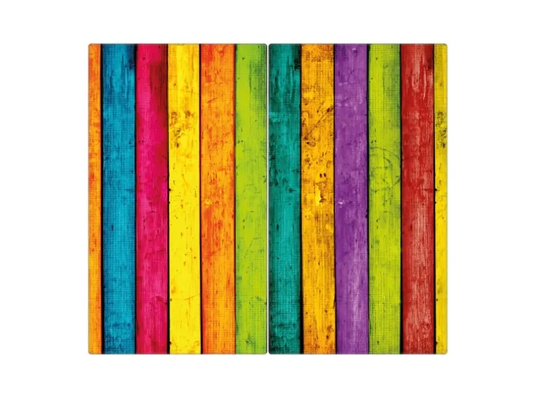 Banjado Herdabdeckplatte Glas 2 Teilig Je 30x52CM Schneidebrett Herdabdeckung Mit Motiv Bunte Holzlatten