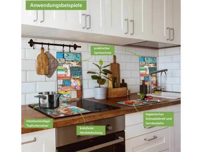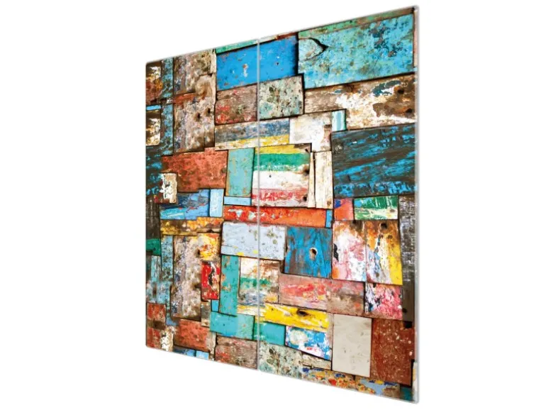 Banjado Herdabdeckplatte Glas 2 Teilig Je 30x52CM Schneidebrett Herdabdeckung Mit Motiv Bunte Holzschindeln