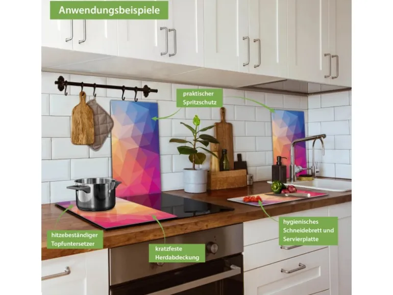 Banjado Herdabdeckplatte Glas 2 Teilig Je 30x52CM Schneidebrett Herdabdeckung Mit Motiv Bunte Kristalle