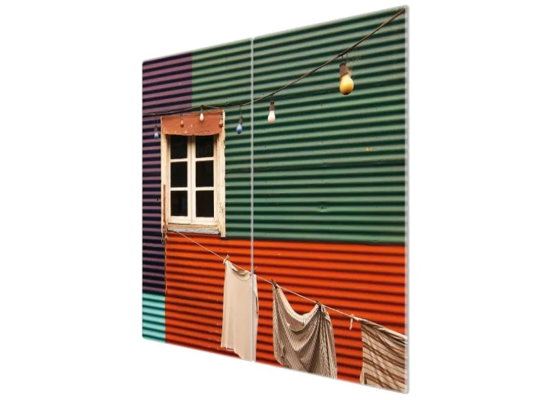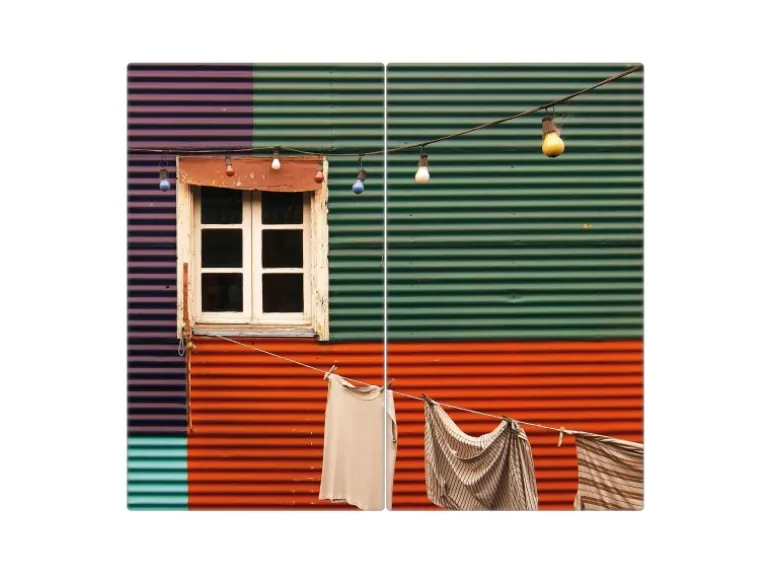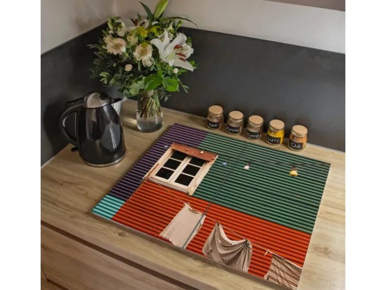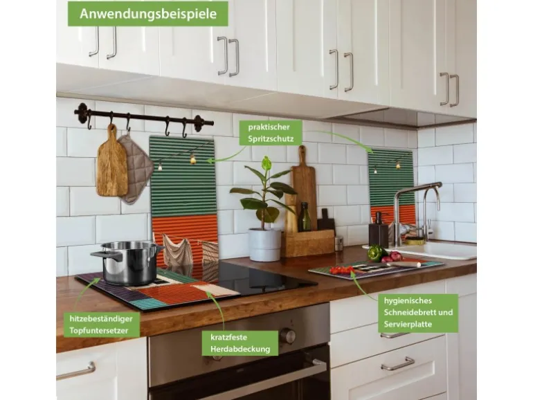 Banjado Herdabdeckplatte Glas 2 Teilig Je 30x52CM Schneidebrett Herdabdeckung Mit Motiv Buntes Haus