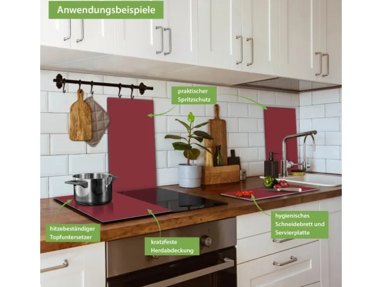 Banjado Herdabdeckplatte Glas 2 Teilig Je 30x52CM Schneidebrett Herdabdeckung Mit Motiv Burgund