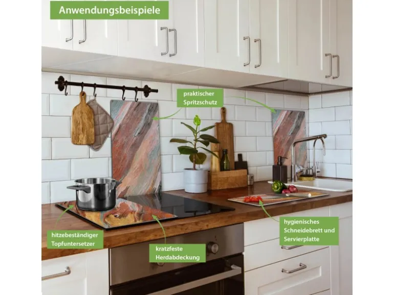 Banjado Herdabdeckplatte Glas 2 Teilig Je 30x52CM Schneidebrett Herdabdeckung Mit Motiv Coloured Wood