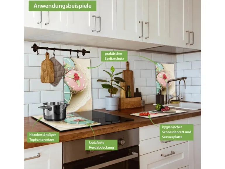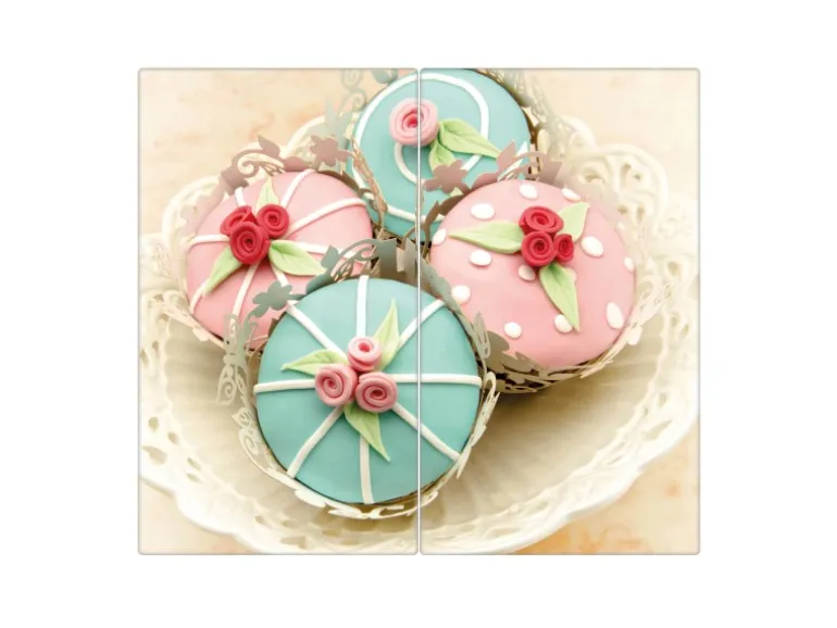 Banjado Herdabdeckplatte Glas 2 Teilig Je 30x52CM Schneidebrett Herdabdeckung Mit Motiv Cupcakes