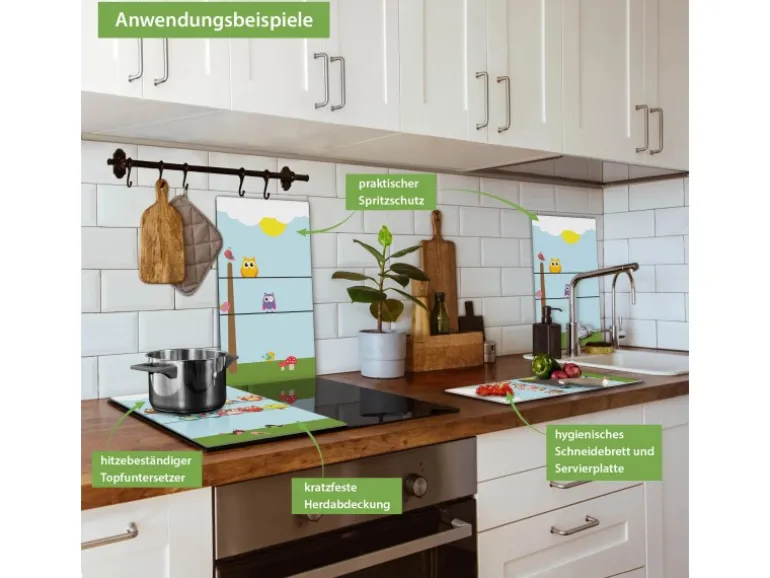 Banjado Herdabdeckplatte Glas 2 Teilig Je 30x52CM Schneidebrett Herdabdeckung Mit Motiv Da Wären Wir