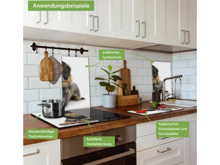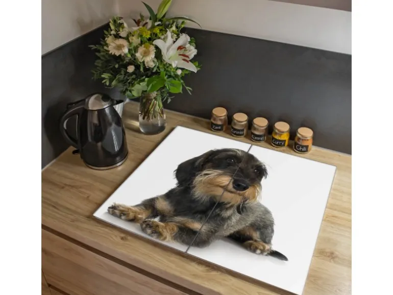 Banjado Herdabdeckplatte Glas 2 Teilig Je 30x52CM Schneidebrett Herdabdeckung Mit Motiv Dackel