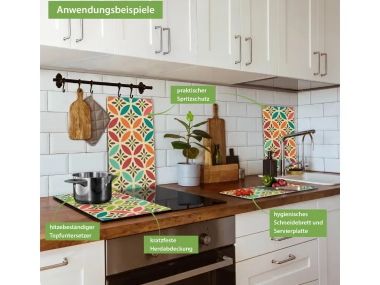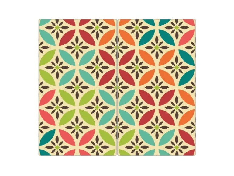 Banjado Herdabdeckplatte Glas 2 Teilig Je 30x52CM Schneidebrett Herdabdeckung Mit Motiv Diamant Muster