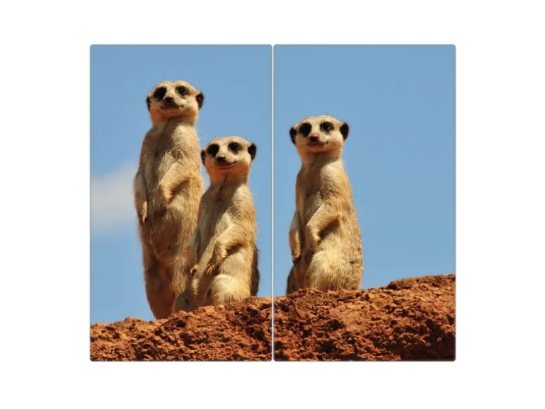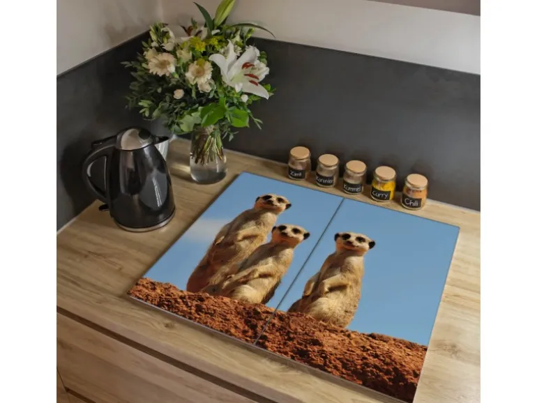 Banjado Herdabdeckplatte Glas 2 Teilig Je 30x52CM Schneidebrett Herdabdeckung Mit Motiv Erdmännchenfamilie