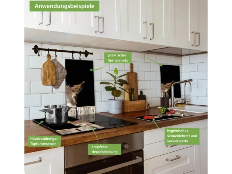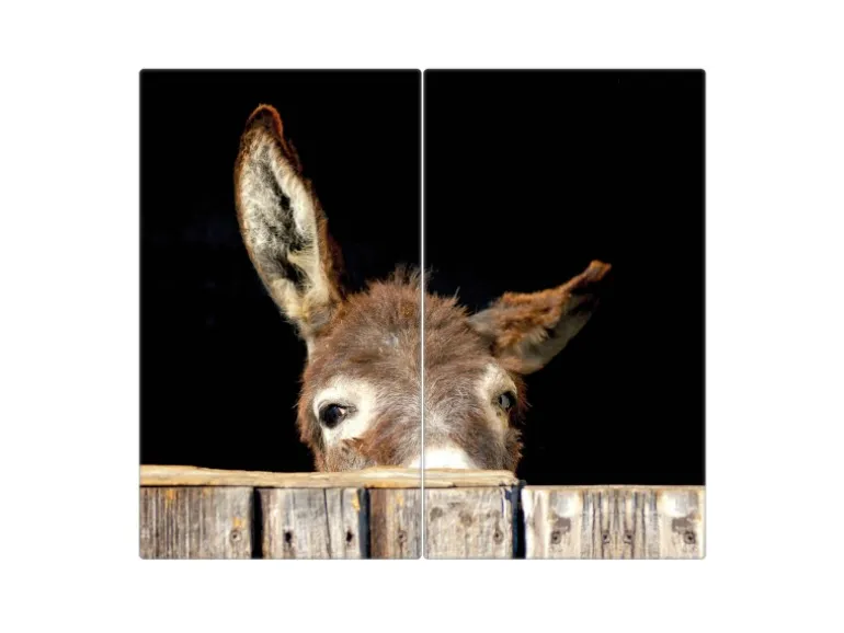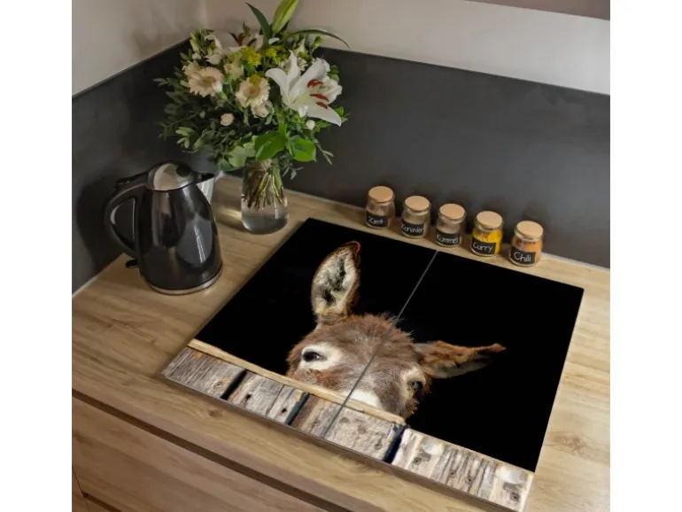 Banjado Herdabdeckplatte Glas 2 Teilig Je 30x52CM Schneidebrett Herdabdeckung Mit Motiv Esel