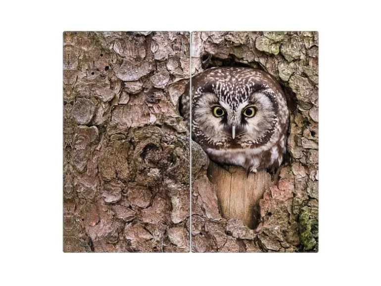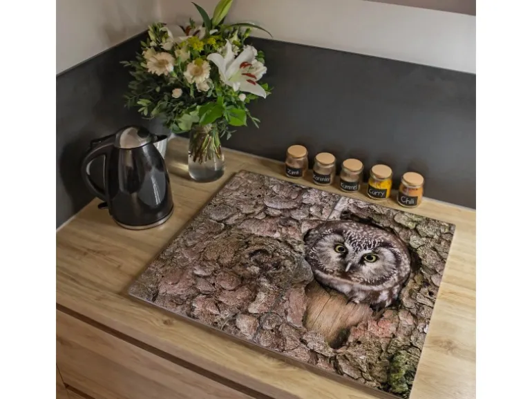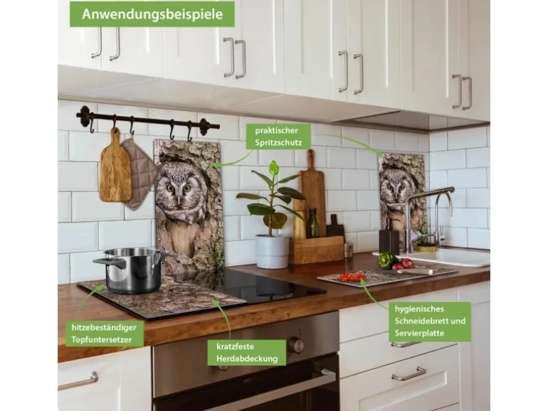 Banjado Herdabdeckplatte Glas 2 Teilig Je 30x52CM Schneidebrett Herdabdeckung Mit Motiv Eule