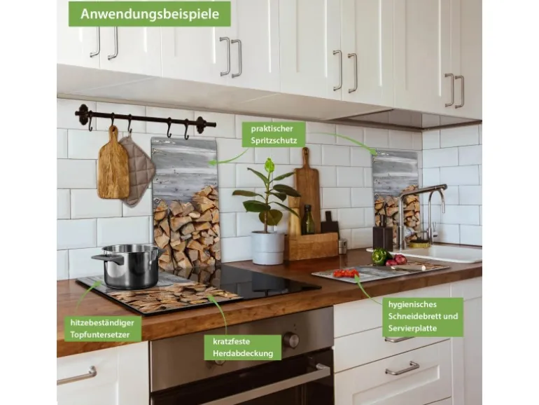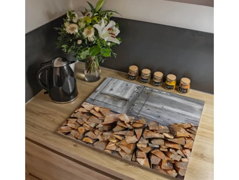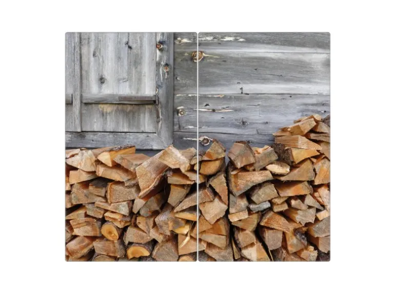 Banjado Herdabdeckplatte Glas 2 Teilig Je 30x52CM Schneidebrett Herdabdeckung Mit Motiv Feuerholz