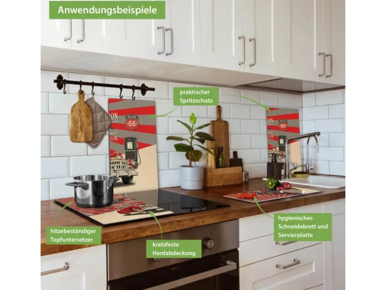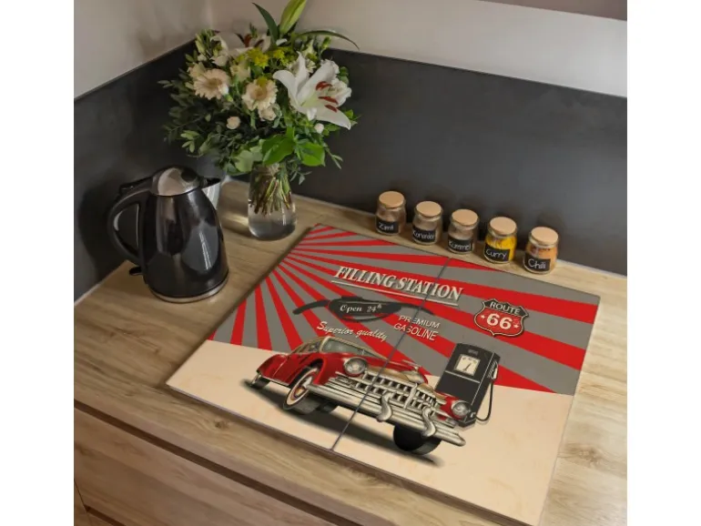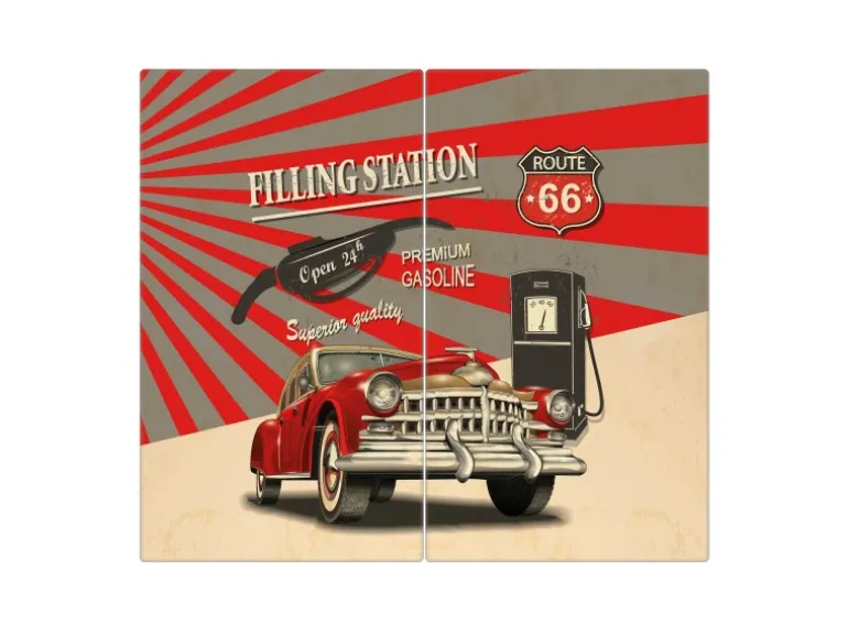 Banjado Herdabdeckplatte Glas 2 Teilig Je 30x52CM Schneidebrett Herdabdeckung Mit Motiv Filling Station