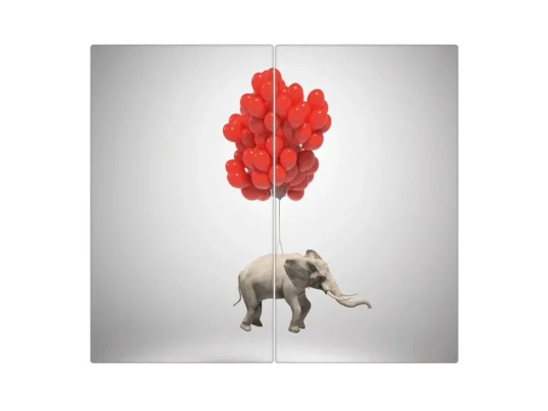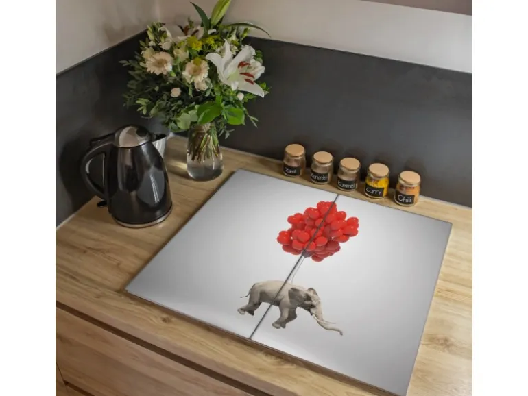 Banjado Herdabdeckplatte Glas 2 Teilig Je 30x52CM Schneidebrett Herdabdeckung Mit Motiv Fliegender Elefant