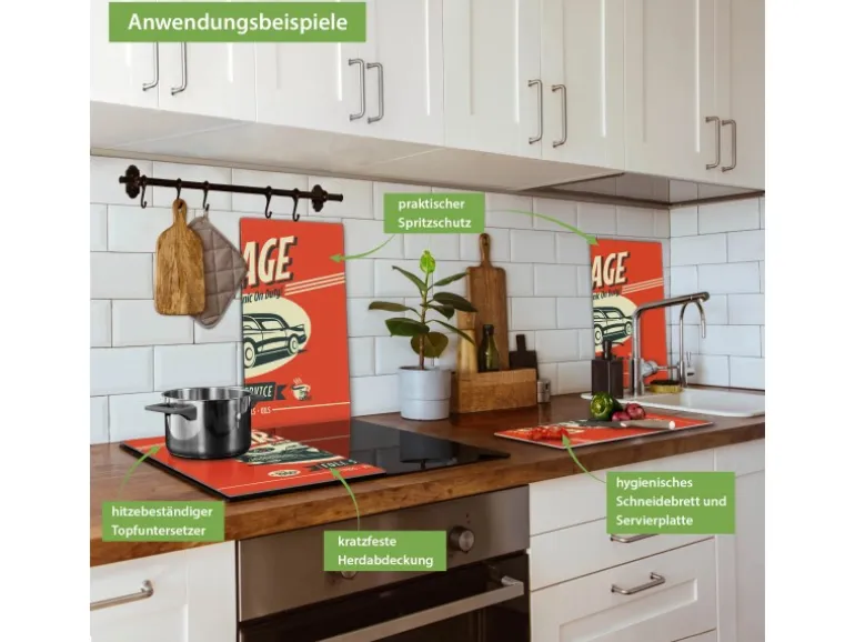 Banjado Herdabdeckplatte Glas 2 Teilig Je 30x52CM Schneidebrett Herdabdeckung Mit Motiv Full Service