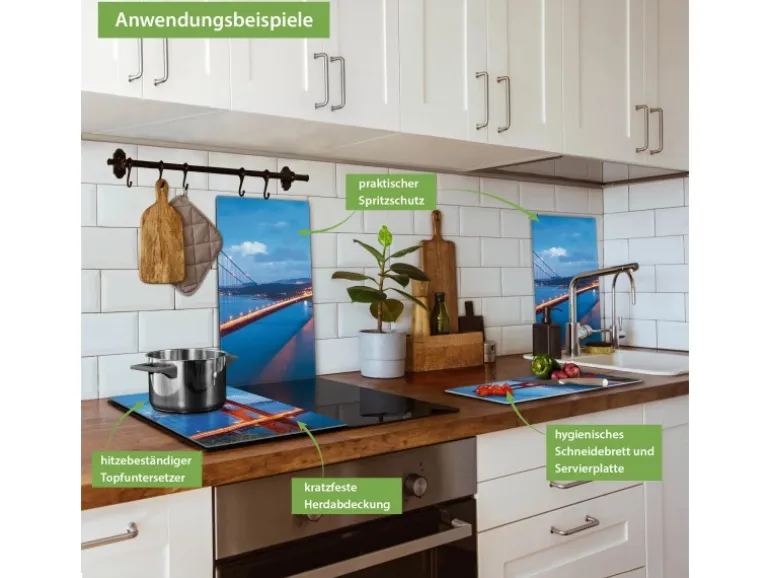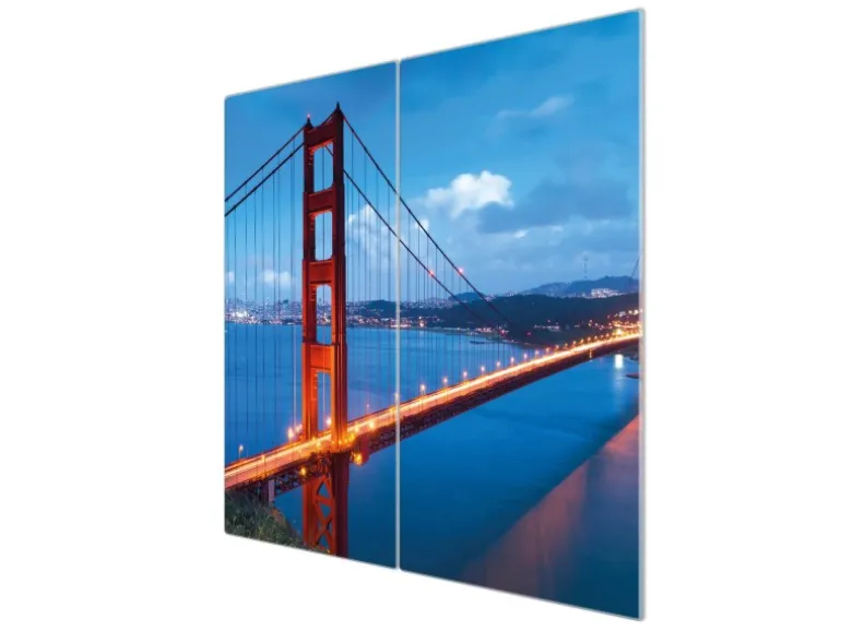 Banjado Herdabdeckplatte Glas 2 Teilig Je 30x52CM Schneidebrett Herdabdeckung Mit Motiv Golden Gate Bridge