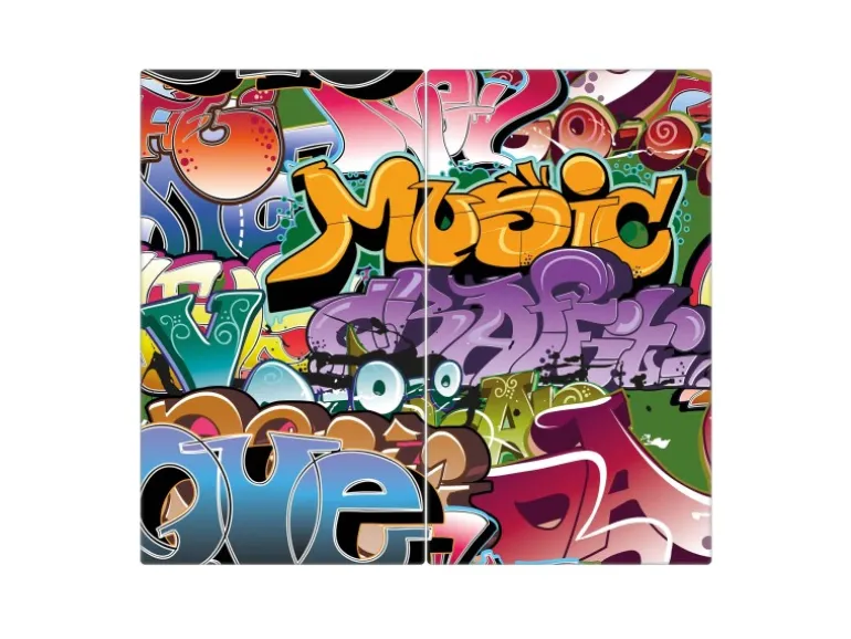 Banjado Herdabdeckplatte Glas 2 Teilig Je 30x52CM Schneidebrett Herdabdeckung Mit Motiv Graffiti