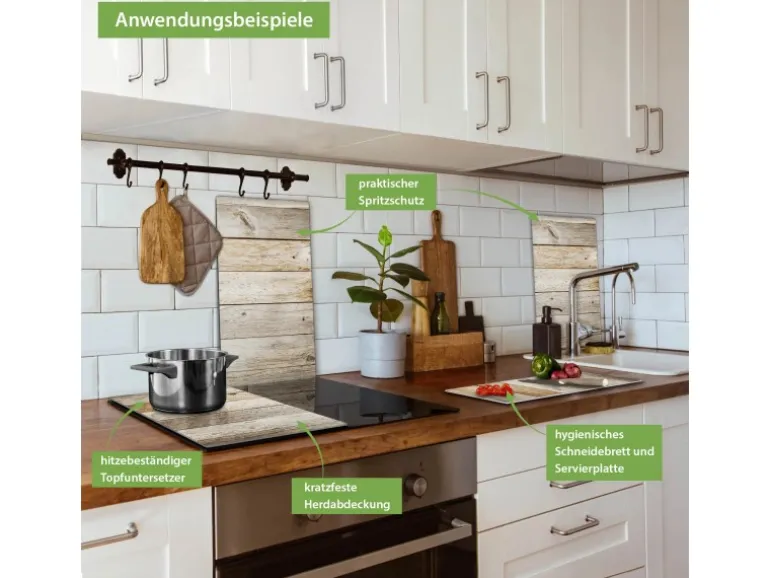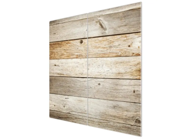 Banjado Herdabdeckplatte Glas 2 Teilig Je 30x52CM Schneidebrett Herdabdeckung Mit Motiv Graues Holz