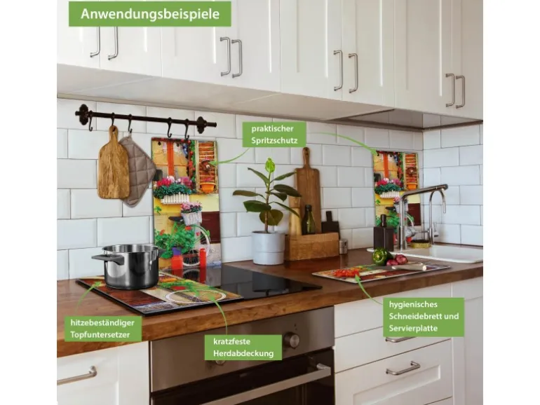 Banjado Herdabdeckplatte Glas 2 Teilig Je 30x52CM Schneidebrett Herdabdeckung Mit Motiv Grünes Fahrrad