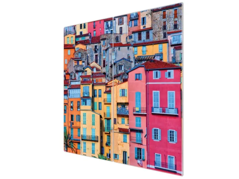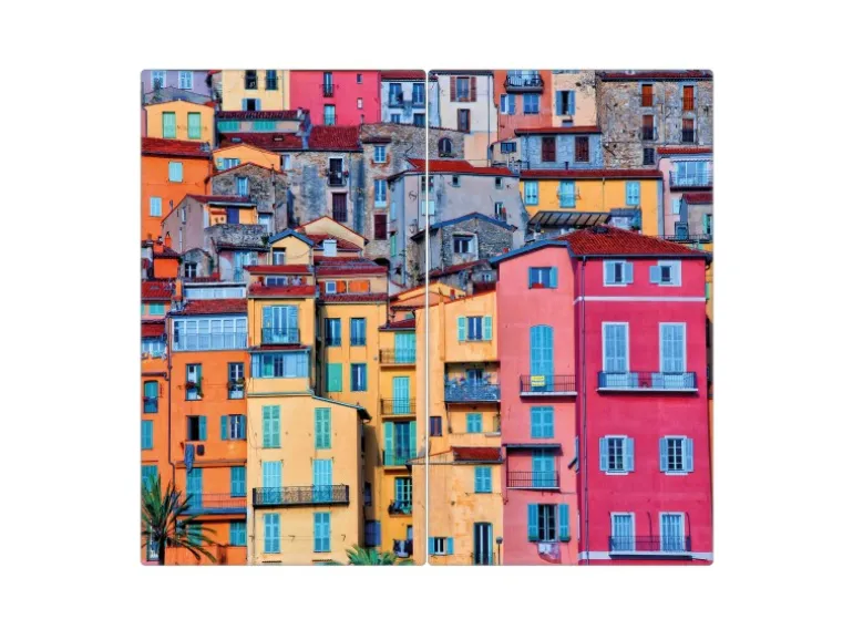 Banjado Herdabdeckplatte Glas 2 Teilig Je 30x52CM Schneidebrett Herdabdeckung Mit Motiv Häuserberg