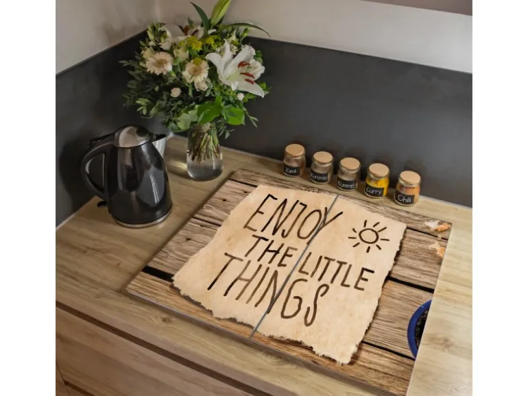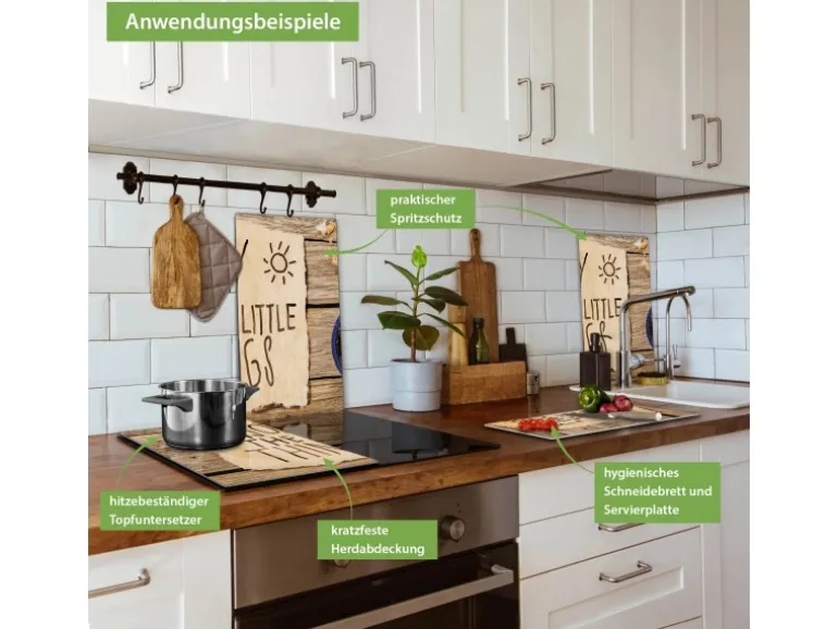 Banjado Herdabdeckplatte Glas 2 Teilig Je 30x52CM Schneidebrett Herdabdeckung Mit Motiv Happy Day