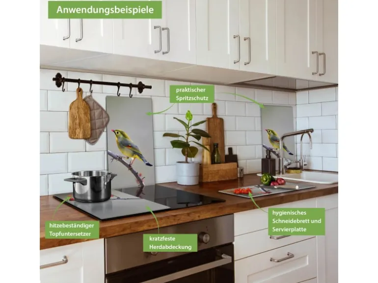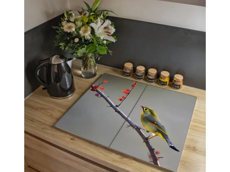 Banjado Herdabdeckplatte Glas 2 Teilig Je 30x52CM Schneidebrett Herdabdeckung Mit Motiv Herbst Vogel
