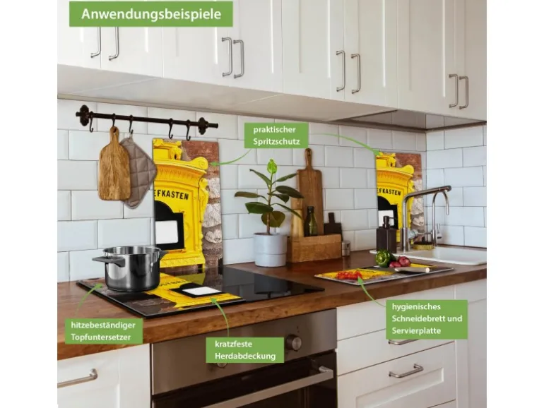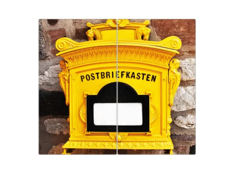Banjado Herdabdeckplatte Glas 2 Teilig Je 30x52CM Schneidebrett Herdabdeckung Mit Motiv Historischer Postkasten