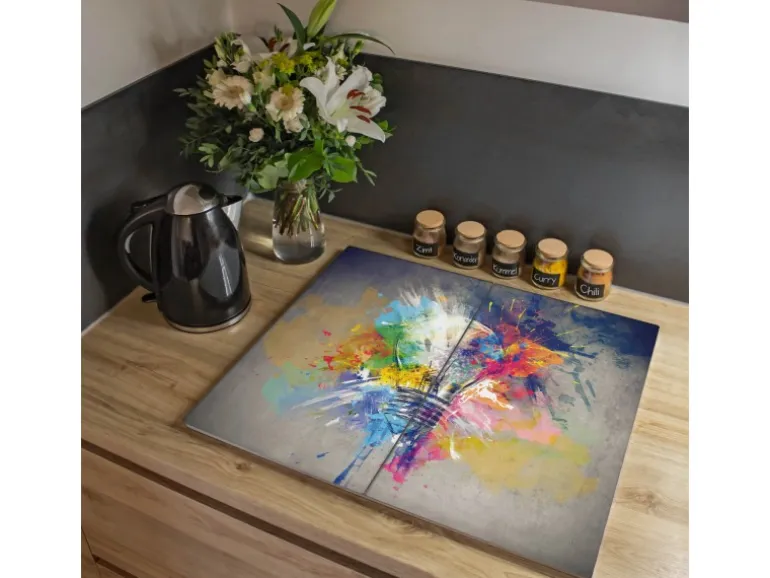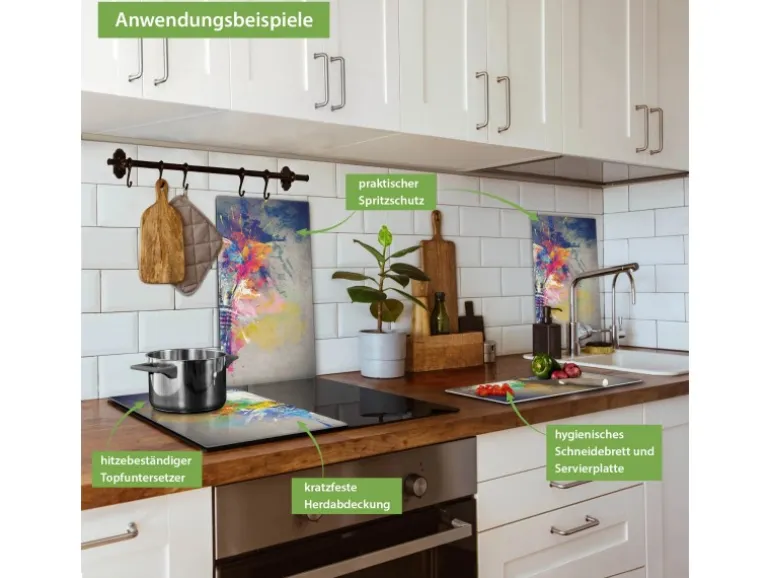Banjado Herdabdeckplatte Glas 2 Teilig Je 30x52CM Schneidebrett Herdabdeckung Mit Motiv Idee