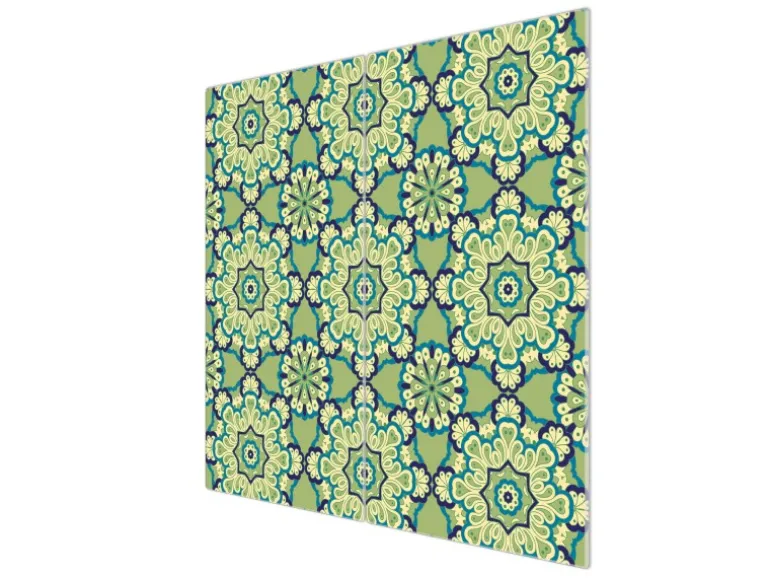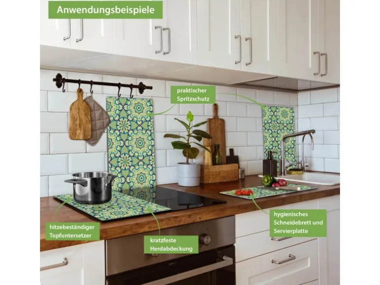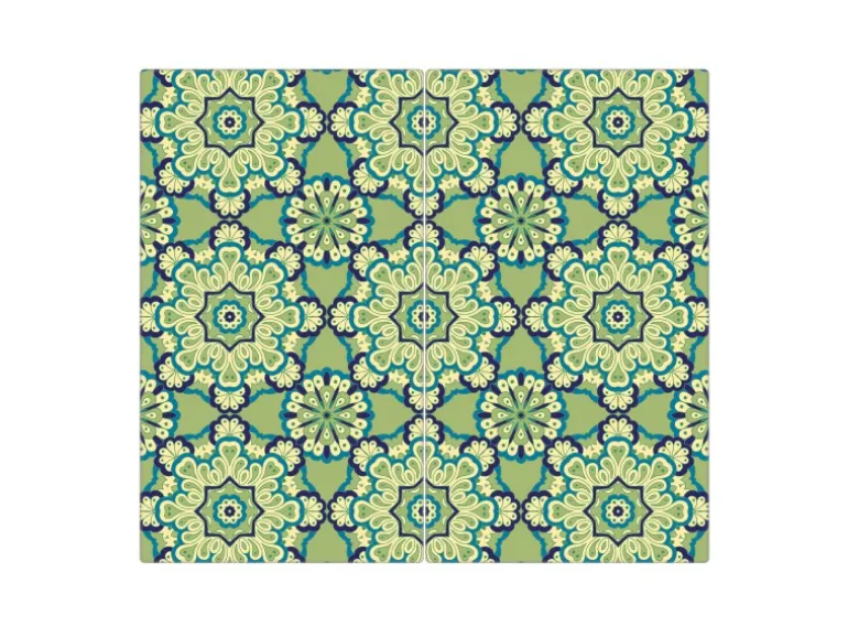 Banjado Herdabdeckplatte Glas 2 Teilig Je 30x52CM Schneidebrett Herdabdeckung Mit Motiv Kaleidoscop Grün