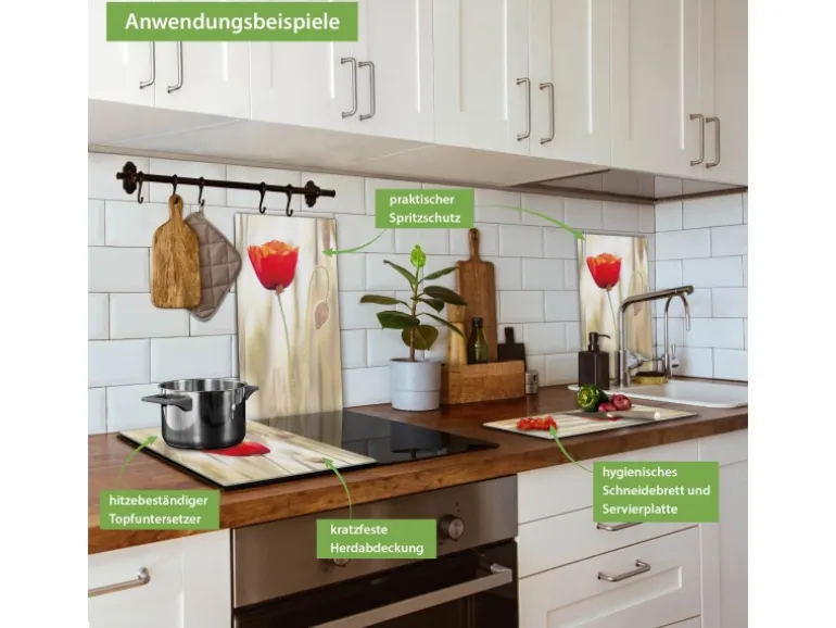 Banjado Herdabdeckplatte Glas 2 Teilig Je 30x52CM Schneidebrett Herdabdeckung Mit Motiv Klatschmohn