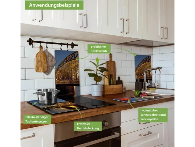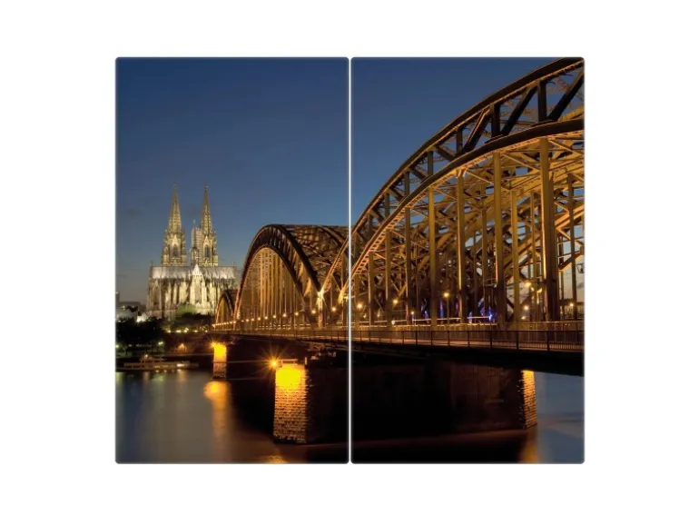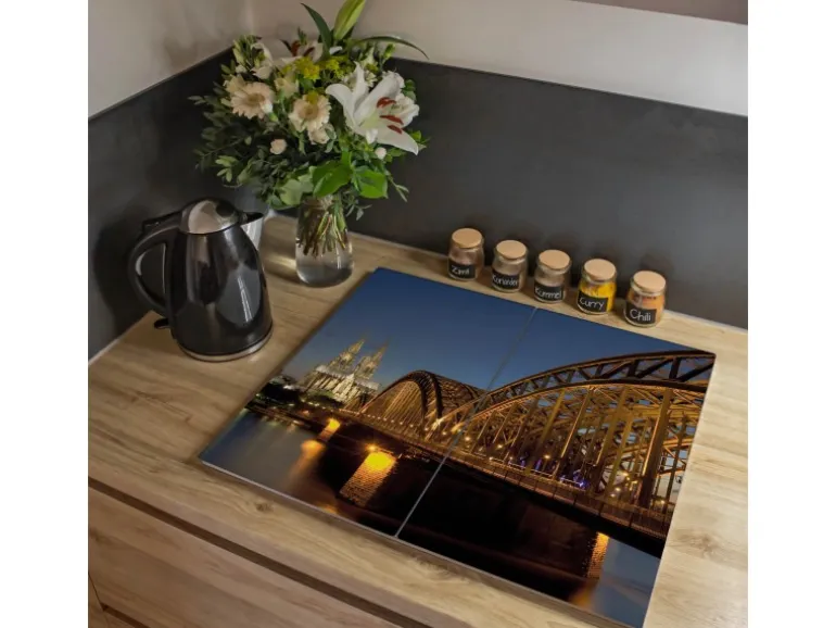 Banjado Herdabdeckplatte Glas 2 Teilig Je 30x52CM Schneidebrett Herdabdeckung Mit Motiv Köln