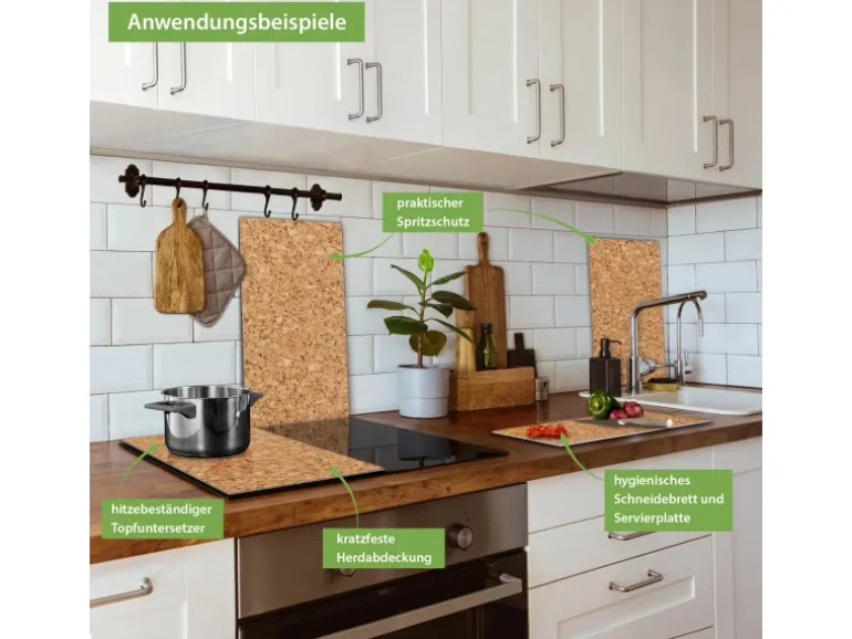 Banjado Herdabdeckplatte Glas 2 Teilig Je 30x52CM Schneidebrett Herdabdeckung Mit Motiv Kork