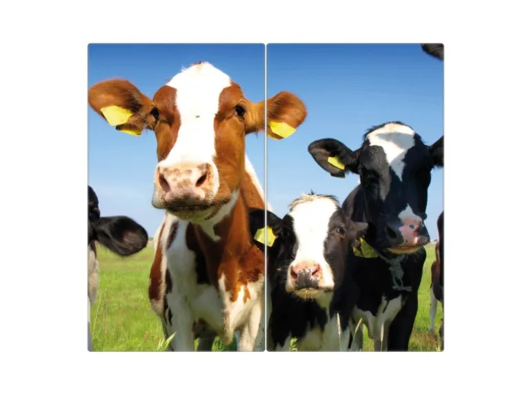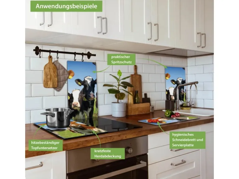 Banjado Herdabdeckplatte Glas 2 Teilig Je 30x52CM Schneidebrett Herdabdeckung Mit Motiv Kühe