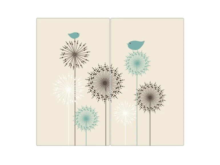 Banjado Herdabdeckplatte Glas 2 Teilig Je 30x52CM Schneidebrett Herdabdeckung Mit Motiv Kugelfontänen