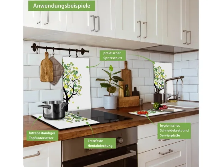 Banjado Herdabdeckplatte Glas 2 Teilig Je 30x52CM Schneidebrett Herdabdeckung Mit Motiv Laubzauberbaum