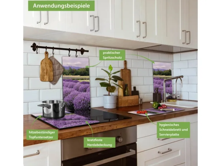 Banjado Herdabdeckplatte Glas 2 Teilig Je 30x52CM Schneidebrett Herdabdeckung Mit Motiv Lavendel 1
