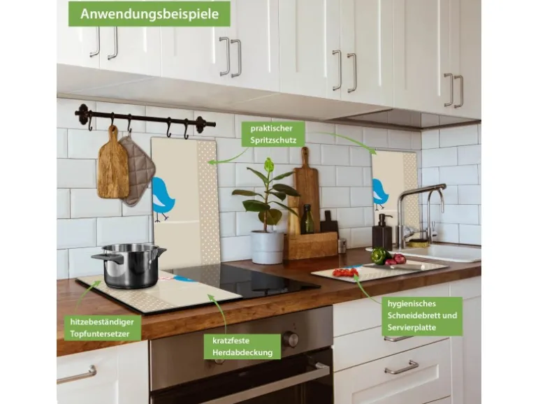 Banjado Herdabdeckplatte Glas 2 Teilig Je 30x52CM Schneidebrett Herdabdeckung Mit Motiv Liebesbrief