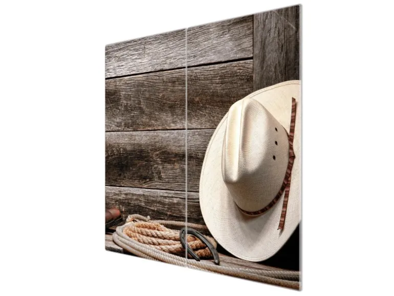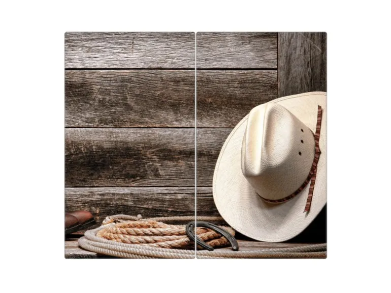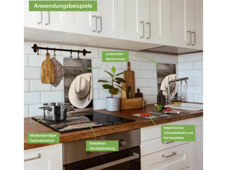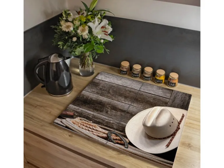 Banjado Herdabdeckplatte Glas 2 Teilig Je 30x52CM Schneidebrett Herdabdeckung Mit Motiv Linedance Set