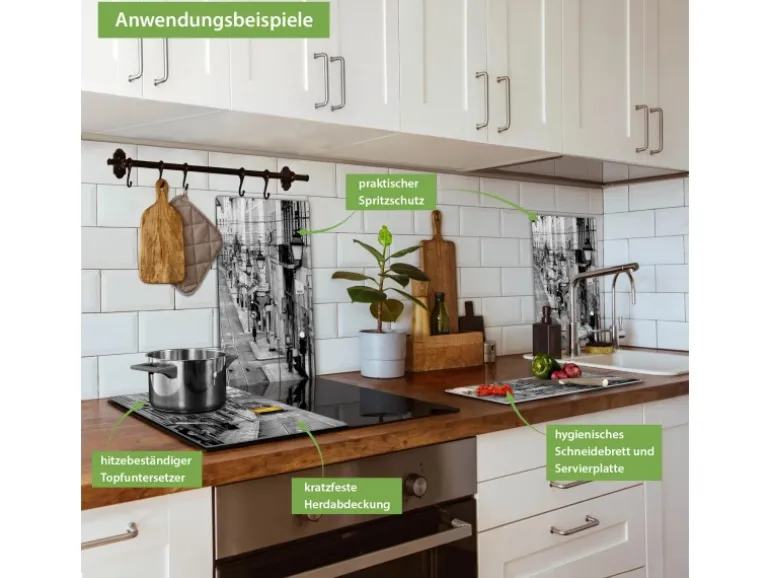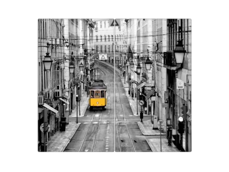 Banjado Herdabdeckplatte Glas 2 Teilig Je 30x52CM Schneidebrett Herdabdeckung Mit Motiv Lissabon
