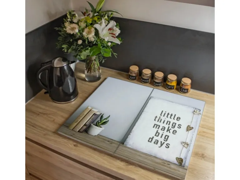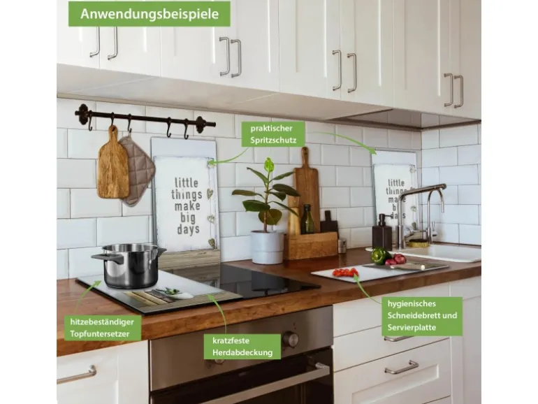Banjado Herdabdeckplatte Glas 2 Teilig Je 30x52CM Schneidebrett Herdabdeckung Mit Motiv Little Things
