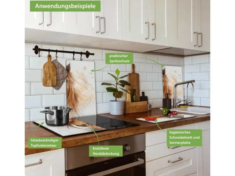 Banjado Herdabdeckplatte Glas 2 Teilig Je 30x52CM Schneidebrett Herdabdeckung Mit Motiv Magic Horse