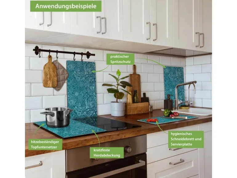 Banjado Herdabdeckplatte Glas 2 Teilig Je 30x52CM Schneidebrett Herdabdeckung Mit Motiv Mandala Landschaft