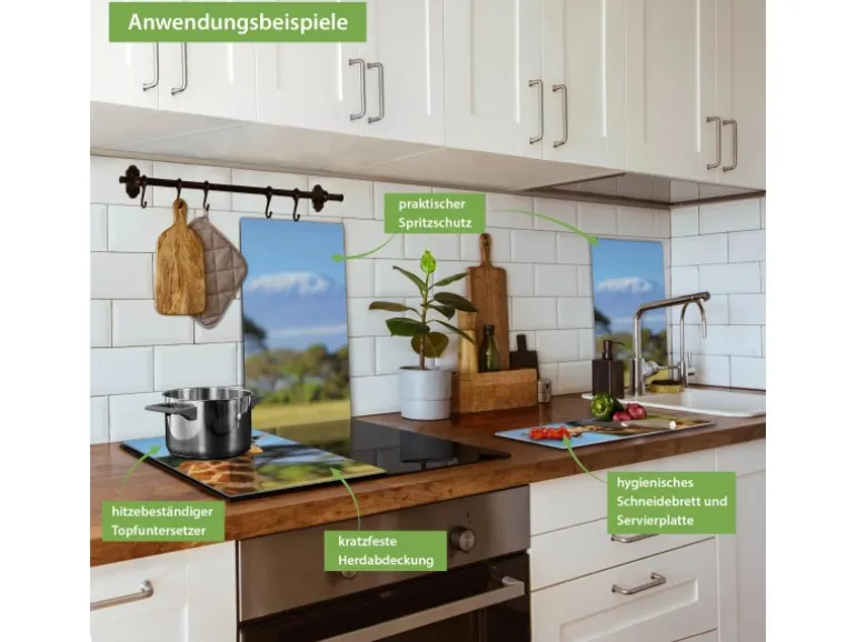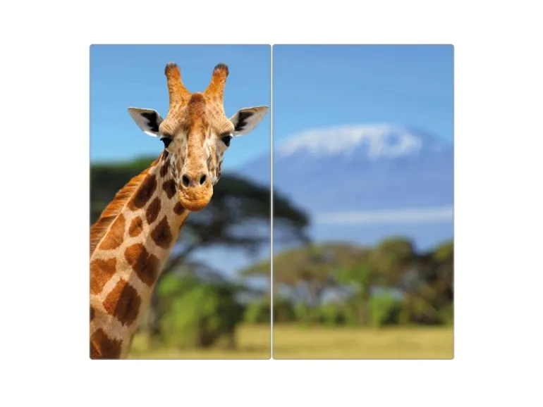 Banjado Herdabdeckplatte Glas 2 Teilig Je 30x52CM Schneidebrett Herdabdeckung Mit Motiv Miss Kilimandscharo
