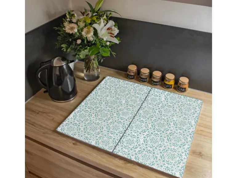 Banjado Herdabdeckplatte Glas 2 Teilig Je 30x52CM Schneidebrett Herdabdeckung Mit Motiv Muster Getupft Blau