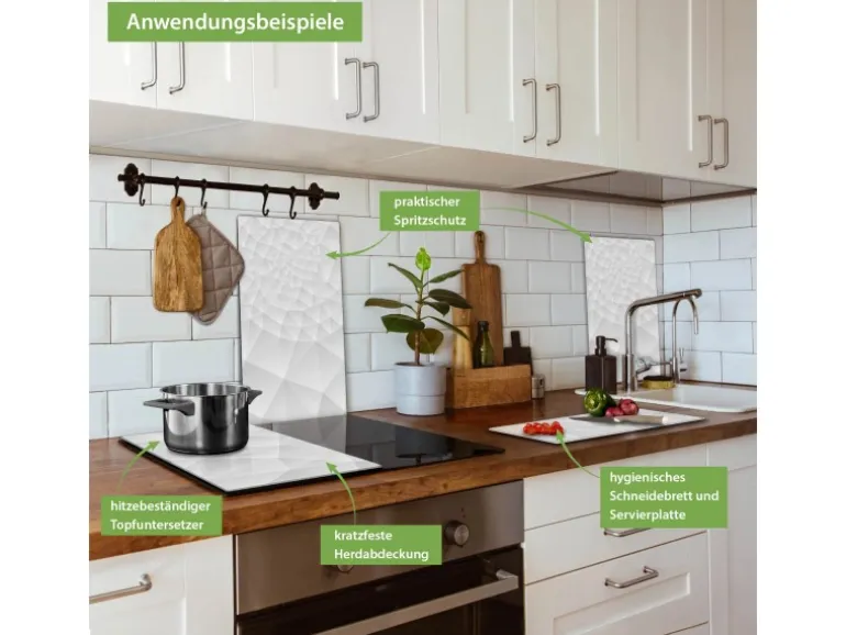 Banjado Herdabdeckplatte Glas 2 Teilig Je 30x52CM Schneidebrett Herdabdeckung Mit Motiv Nautilus