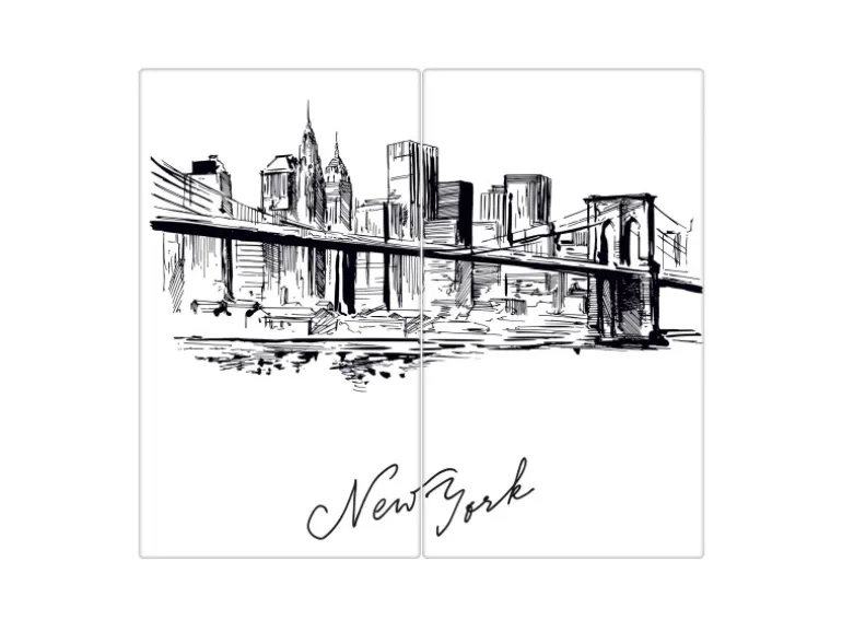 Banjado Herdabdeckplatte Glas 2 Teilig Je 30x52CM Schneidebrett Herdabdeckung Mit Motiv New York Skizze