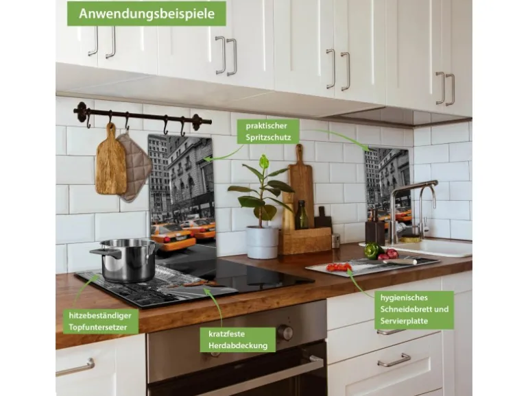 Banjado Herdabdeckplatte Glas 2 Teilig Je 30x52CM Schneidebrett Herdabdeckung Mit Motiv New York Taxi