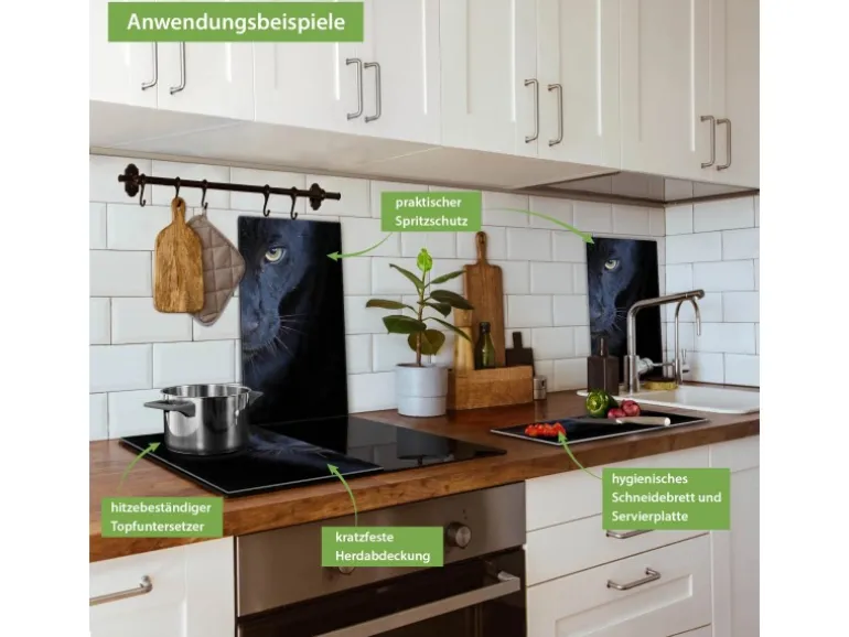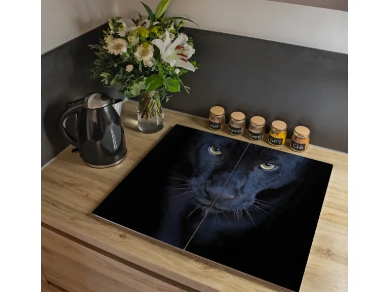 Banjado Herdabdeckplatte Glas 2 Teilig Je 30x52CM Schneidebrett Herdabdeckung Mit Motiv Nora