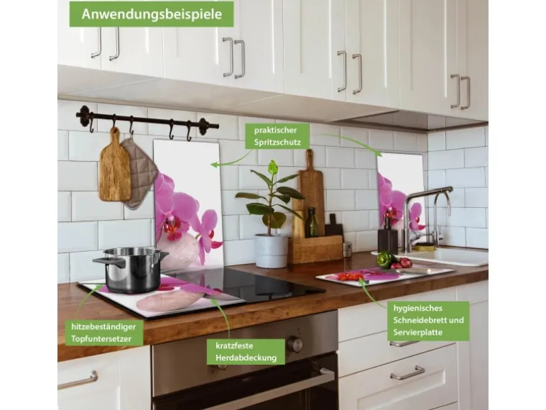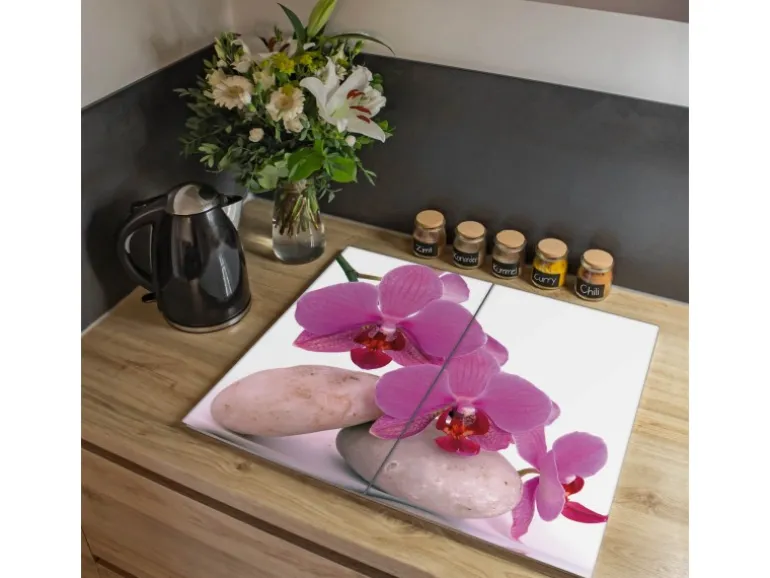 Banjado Herdabdeckplatte Glas 2 Teilig Je 30x52CM Schneidebrett Herdabdeckung Mit Motiv Orchidee