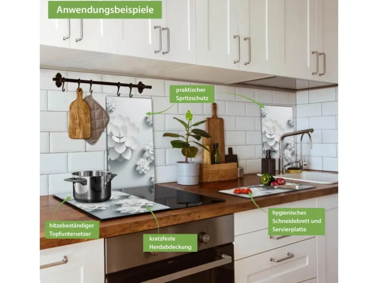 Banjado Herdabdeckplatte Glas 2 Teilig Je 30x52CM Schneidebrett Herdabdeckung Mit Motiv Papier Lotus