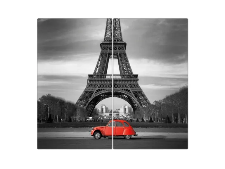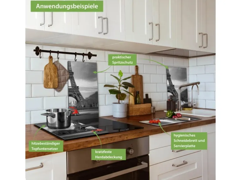 Banjado Herdabdeckplatte Glas 2 Teilig Je 30x52CM Schneidebrett Herdabdeckung Mit Motiv Paris